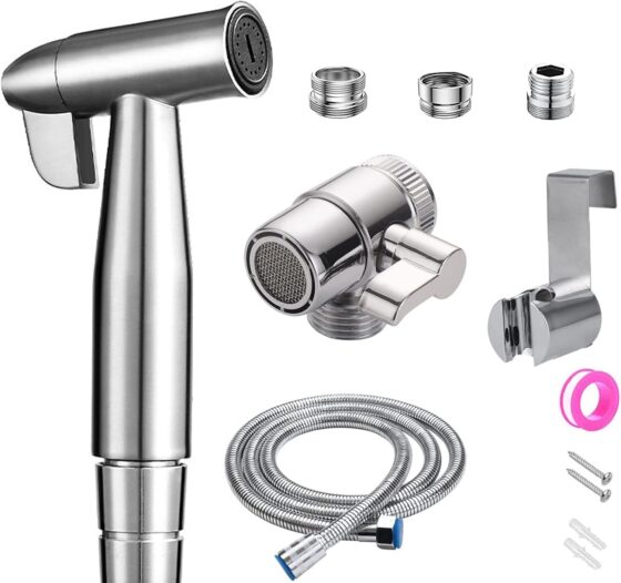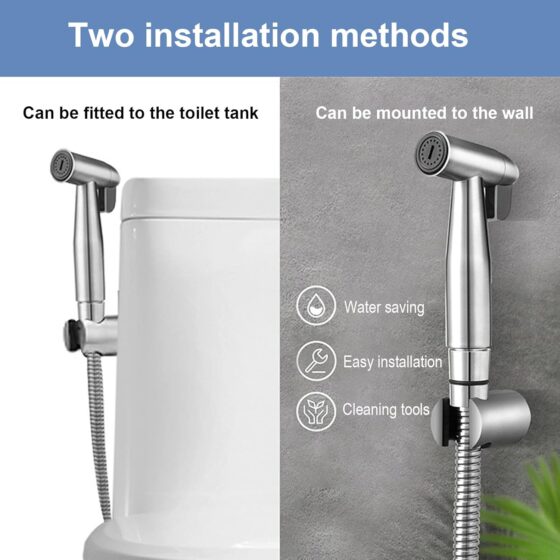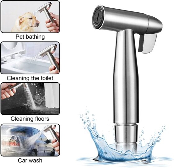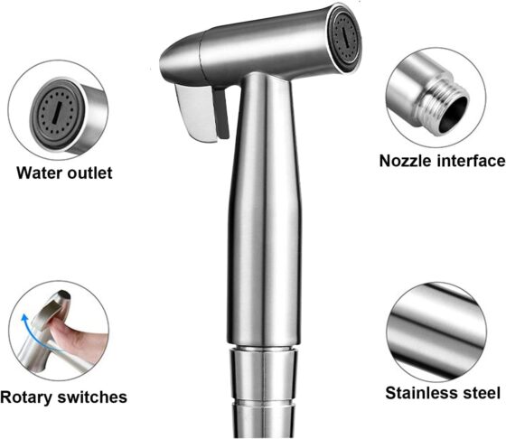 Bidet en acier inoxydable douchette à main, bidet musulman en acier inoxydable et kit de pulvérisation de couches en tissu pour bébé – avec distributeur de robinet,toilettes à crochet ou support mural