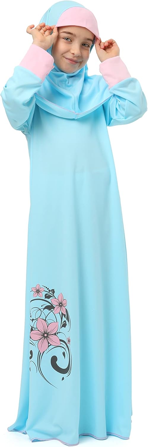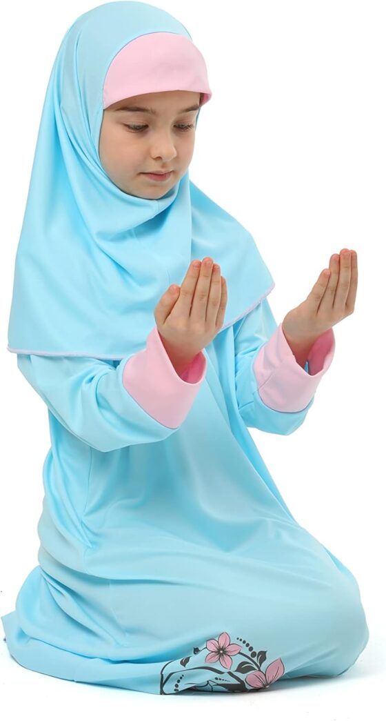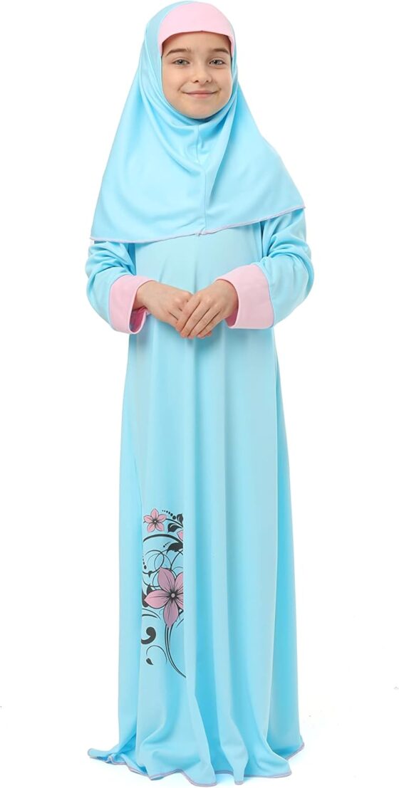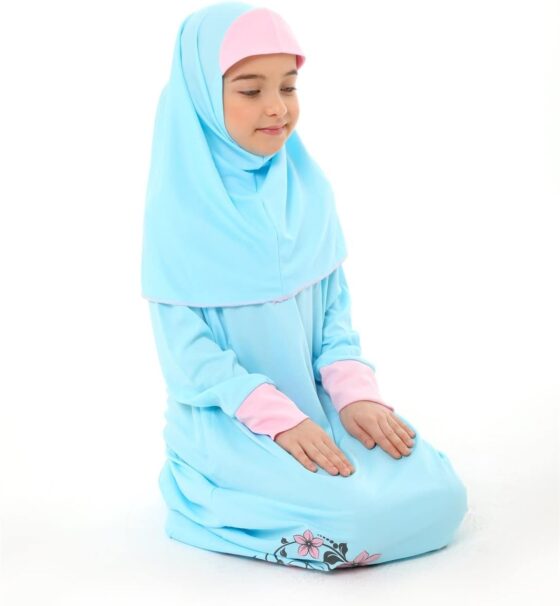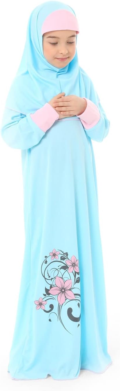 Ensemble de prière islamique pour fille avec manches à revers et imprimé floral pour filles musulmanes – Ensemble de prière islamique pour filles musulmanes