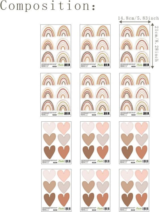 sticker mural Arc-en-ciel et amour : 72 unité au total (12 feuilles), peuvent être combinées librement.